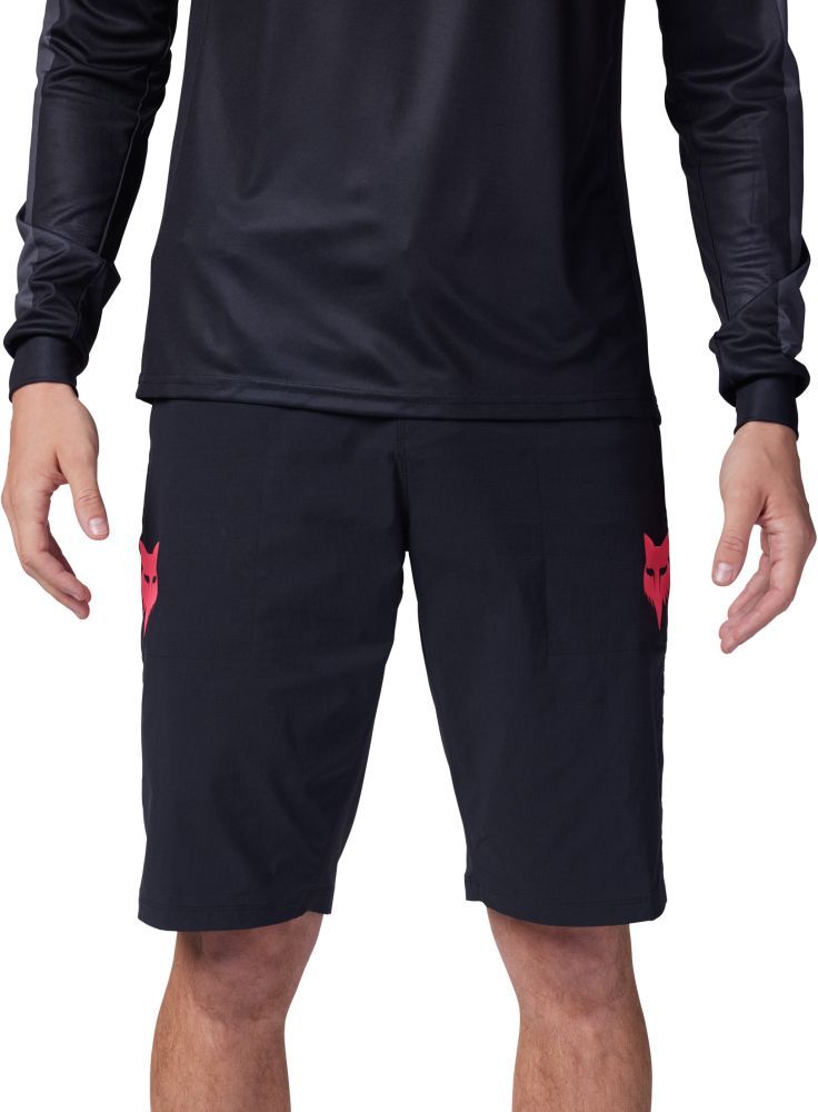 Pánské cyklo šortky v rovném střihu. Nastavování obvodu páskem, boční kapsy na zip. TruDri Ripstop provedení materiálu odvádí pot od těla, DWR zátěr materiálu. Složení materiálu: 70% polyamid nylon, 24% polyester, 6% elastan. Potisk logem Fox na levé a pravé nohavici na boku.